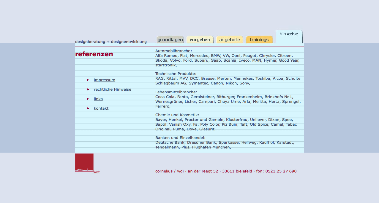 Die dort beschriebene WAHRNEHMUNG des eigenen Auftritts ist wohl am Anbieter gleich vorbeigegangen. Um so mehr werde ich natürlich meinen Blick auf die Referenzenliste setzen, um erstaunt festzustellen, dass wir es hier mit einem ganz Großen der Design-Branche zu tun haben müssen. Es liest sich hier wie das Who is Who der Markenlandschaft und Marktführer aller Branchen…