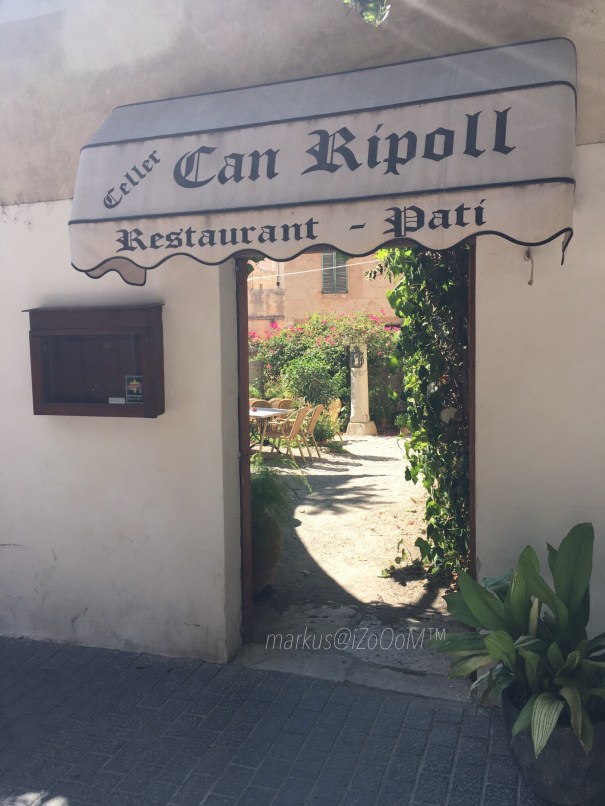 Nachdem mit OrGano Kaffee und Lavylite Auricum das Networker BitCoin Konto in zwei Stunden Berufung wieder gut gefüllt war, konnte der Appetit wieder seinen freien Lauf haben. Zwei Kandidaten standen auf dem Wunschzettel. Leider war der Erste komplett belegt und der Zweite hatte ausgerechnet heute Ruhetag. Also war geruhsames Schlendern und Finden angesagt. Dann erschien vor den Augen eine fast unscheinbare Tür mit einem wohlbekannten Namen aus dem Weinanbaugebiet Binissalem.