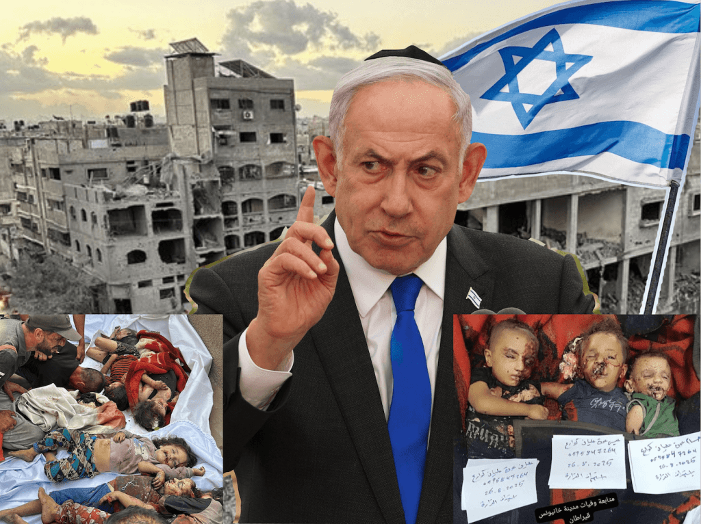 So reibt man sich verwundert die Augen, wenn einer der größten Kriegstreiber und Massenmörder unserer Zeit, Israels Regierungschef Benjamin Netanjahu, ihm dabei zu Hilfe eilt. Aber vielleicht ist das ja auch sinnbildlich zu verstehen, denn wie schon George Orwell in seinem „prophetischen“ Buch „1984“ schrieb; „Aus Krieg wird Frieden!“