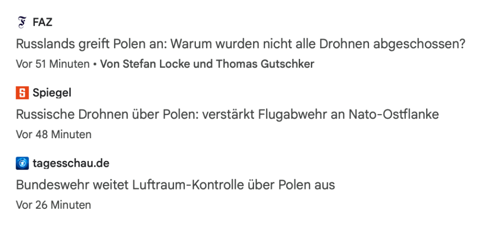 […] keine Drohnen, um irgendwo zu spionieren, denn Russland hat dafür Satelliten. Aber vielleicht braucht die NATO unbedingt ihren Krieg mit Russland und inszeniert dafür einen neuen „Sender Gleiwitz“ Vorfall, um endlich in […]