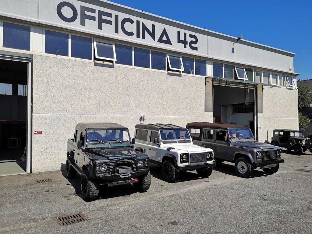 Angekommen, steht man vor dem „OFFICINA 42“ und rings um der Werkshalle stehen unzählige Karosserien der britischen Marke Land Rover. Der freundliche Chef Egidio und seine Mannschaft kümmern sich um die Kunden, die allesamt mehr als zufrieden mit den Leistungen des Unternehmens sind. Spezialisiert hat man sich dort auf Fahrzeuge aus dem 4×4 Segment und Oldtimer.