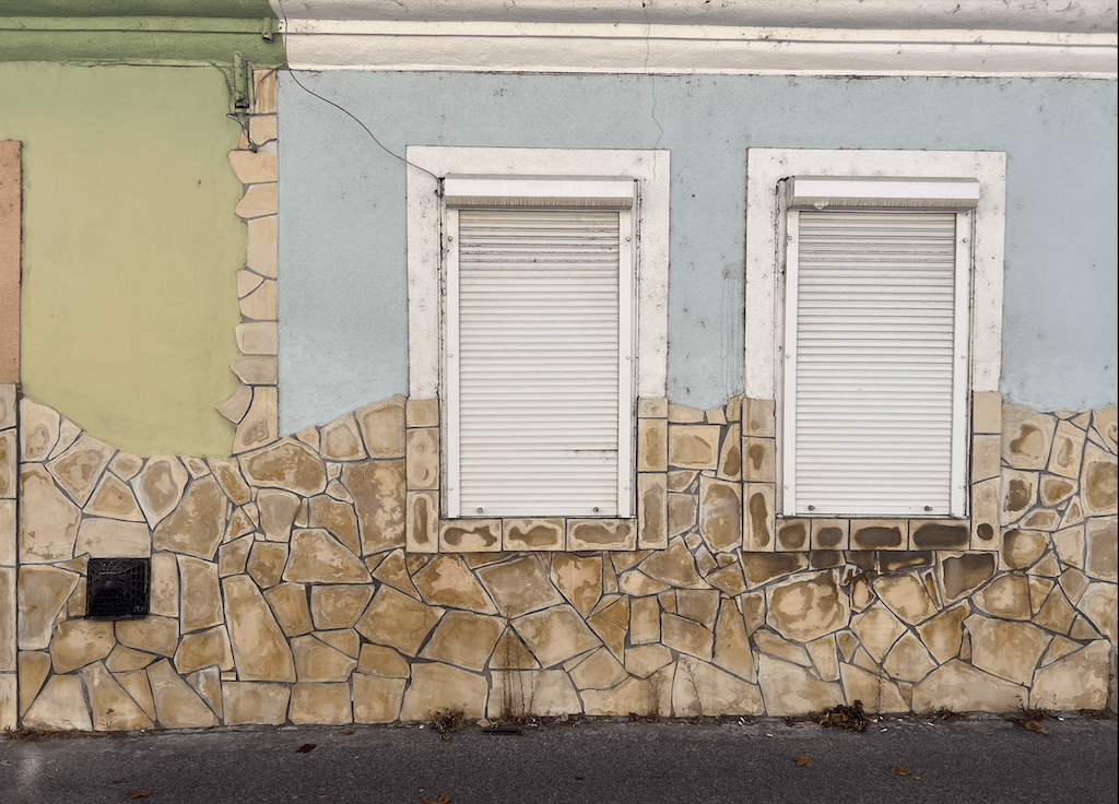 Zwei Farben, Zwei Häuser, Zwei Fenster und dennoch EINE Symbiose. In einer sonst tristen Strasse in der Stadt Kesthely am Balaton in Ungarn offenbart sich dem aufmerksamen Betrachter manche Schönheit.